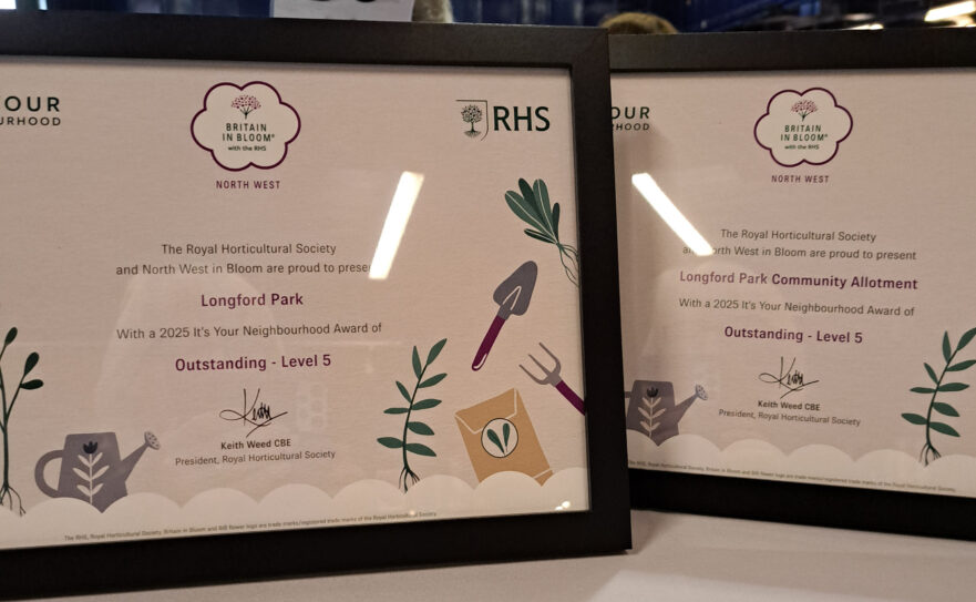 Longford Park and The Community Allotment have been awarded Outstanding again by North West In Bloom. Well done to everyone who contributes to making the park a wonderful place.